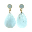 Gelbgoldene moderne Ohrstecker besetzt mit einem Chalcedon in einer glatten Fassung und daran ein großer hängender Mondstein. Lesen Sie mehr.