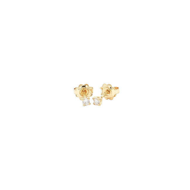 Gelbgoldene Solitär-Ohrstecker mit einem Diamanten in einer 4-Krappen-Fassung. Es handelt sich um ein neues Paar Ohrringe. Lesen Sie mehr.