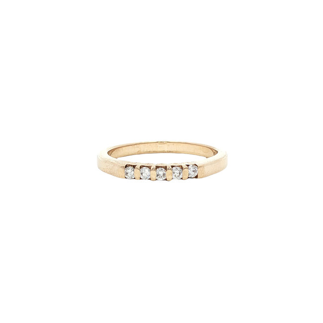 Gelbgoldener Reihenring besetzt mit 5 Diamanten. Lesen Sie mehr.
