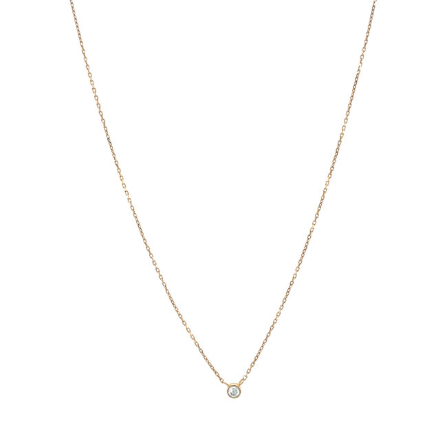 Feine roségoldene Halskette mit einem festen Solitäranhänger, besetzt mit einem Diamanten der Marke Van Rycke Paris. Schließt mit einem Federring.