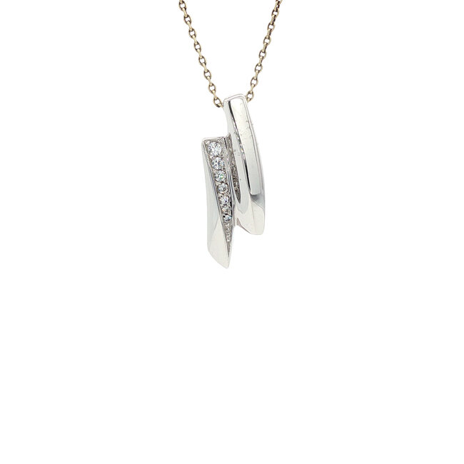 Schöner, eleganter Weißgoldanhänger besetzt mit einer Reihe von Zirkonia. Lesen Sie mehr.