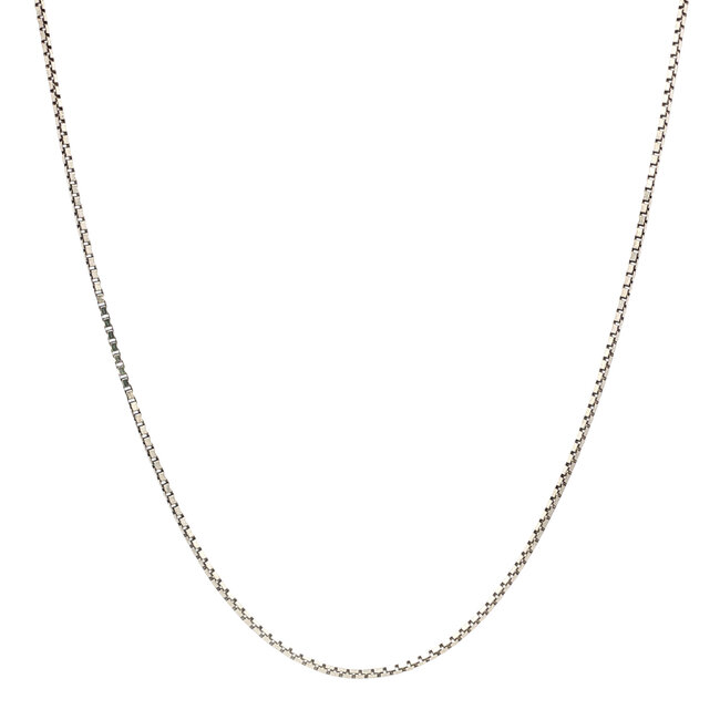 Weißgoldenes Langhalsband mit Venezianerketten. Schließt mit einem Federring. Lesen Sie mehr.