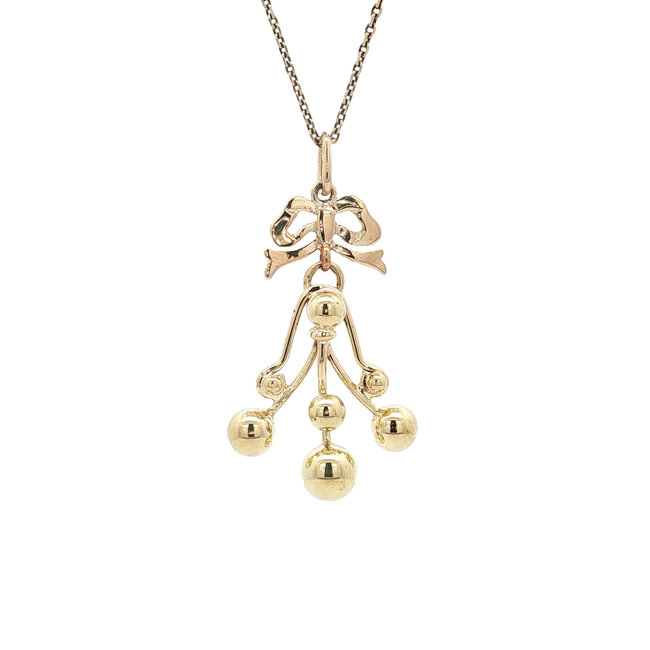 Fantasy pendant with a bow and gold beads. Read more.