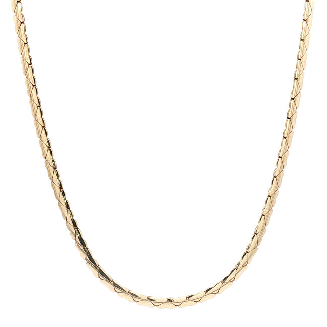 Yellow gold choker made from flat heart-shaped links. Closes with a lobster clasp. Read more.