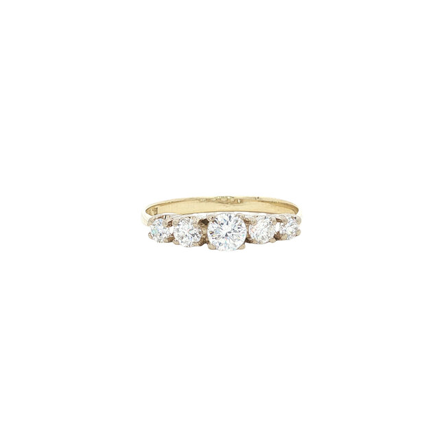 Gold ring with zirconia set in a row in a white gold setting. The ring size can be adjusted. Read more.