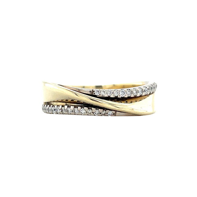 Yellow gold hammered ring set with a diamond in a white gold setting. The ring size can be adjusted. Read more.
