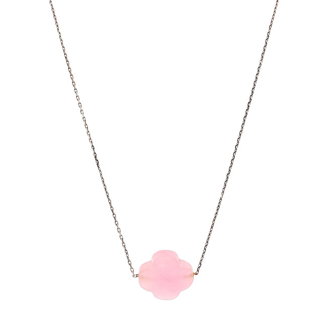 Beautiful fine white gold necklace by Morganne Bello in anchor links with a four-leaf clover of pink gemstone. The length is adjustable. Read more.