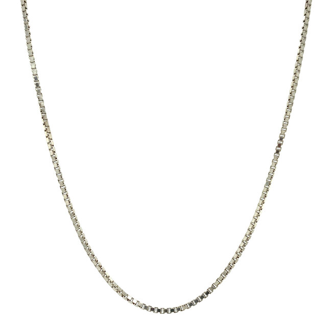 Witgouden lengtecollier van venetiaan schakels. Sluit met een veeroog.