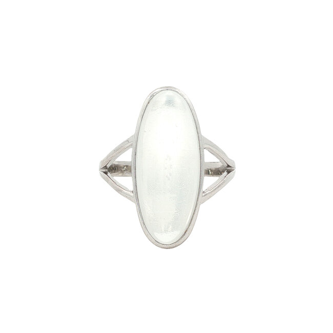 Mooie grote ring bezet met een ovale cabochon geslepen cat's eye maansteen. De ringmaat kan aangepast worden. Lees meer.